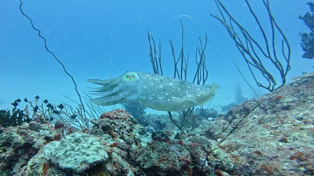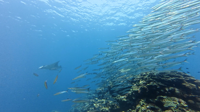 今日はマンタから離れて、サンゴや小魚をメインに潜って来ました。僕としてはグルクマーの捕食が面白かったな~。 |