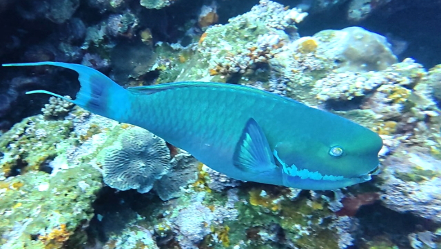 1本目久しぶりにヨナラでドリフトしましたが、マダラエイとトビエイは見れたけどマンタは不在でした。午後は石埼移動。ポイント待ちはなくすんなり潜れたけど1時間粘ったが残念ながらマンタは不在。船に上がって10分過ぎ、素潜りをしていたショップがマンタ来た~。だって。トホホー。 |