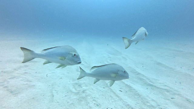 台風明け初日石埼に行ったけど、残念ながら午前及び午後もマンタは姿を現れず。マンタ待ちの間ホソカマスの群れを撮ったり、カメの写真を撮ったりして時間つぶし。この時期としては珍しくアイゴの群れが見れたとさ。 |