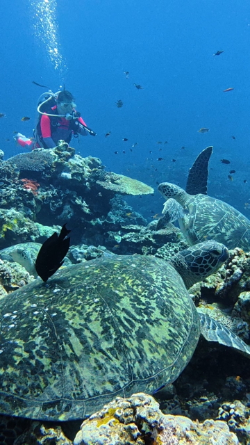今回のゲスト達はマンタは見飽きる程見たから、最終日は小浜島周辺でカメ、サメ、イカ、コロダイ、テンジュクダイ等々見て撮って(良い写真が撮れたはず)2ダイブ潜って今年の潜り納です。 |