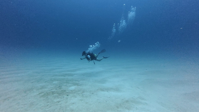 1本目はヨナラ水道にて砂紋の綺麗なポイントに潜って来ました。透明度は今ひとつスッキリしませんが、自然の造形美を楽しみ、イカとかスカテンとか見ごたえ有りましたよ。午後は石埼マンタポイントに行って来ましたが残念ながらマンタは不在でした。カメは毎回安定して見れるからポイント名を変更かな~。 |
